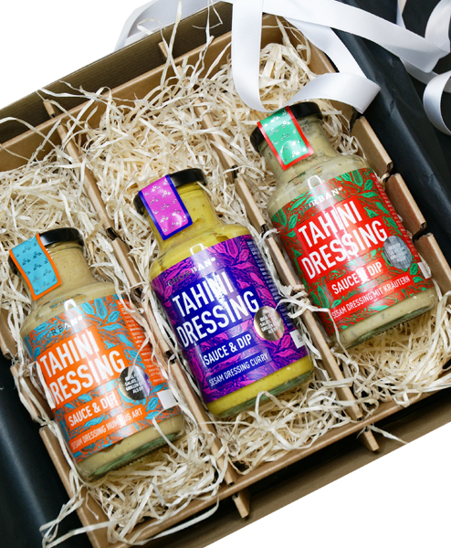 Geschenkpaket mit drei Sesam-Dressings